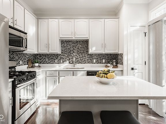 Beautifully renovated 4BR/3.5BA corner brownstone in the Village of WestClay with over $35K in thoughtful improvements in 2024. This move-in ready home is filled with windows and natural light, offering a flexible layout and modern updates throughout. The open main living area features a spacious great room with plenty of space for both living and dining, an updated powder bath, and a stunning kitchen with quartz countertops, new tile backsplash, updated faucet, and all-new stainless steel appliances. A cozy adjacent sitting area with gas fireplace and a balcony off the kitchen provide the perfect settings for everyday living and entertaining. The lower level includes a full bath and a versatile room with wide-plank wood laminate that can be used as a 4th bedroom, office, gym, or theatre, enhanced with surround sound, smart lighting, and built-in cabinetry. Upstairs, all bedrooms feature wide-plank waterproof wood-based laminate and new ceiling fans. The primary suite offers custom built-in drawers and organization, while the fully renovated spa bath includes dual vanities, Delta fixtures, glass shower doors, dual shower heads, and a smart exhaust fan. Additional baths have been stylishly updated, and recent mechanical upgrades ensure peace of mind. As a desirable corner unit, this home benefits from added windows, abundant natural light, and a common green space to the side that provides extra privacy. Additional highlights include an insulated garage door, updated lighting throughout, and low-maintenance living with HOA covering exterior and landscape care. Just steps from shops, dining, parks, pools, tennis, and fitness centers, this is a rare opportunity to own a move-in ready, fully updated brownstone in one of Carmel's most desirable communities.
