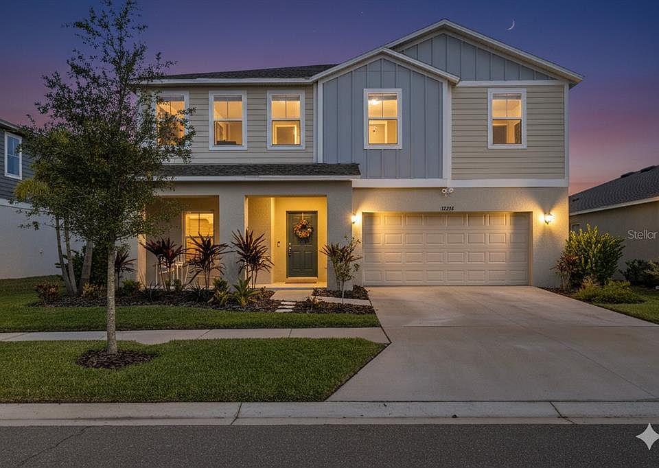 Under contract-accepting backup offers. Priced $38,000 below recent appraisal (November, 2025). Welcome to Hawkstone! Stunning 5 bedroom, 3 bathroom, 3 car garage, POOL HOME with the most beautiful, tropical oasis backyard! The first story also features a secluded guest suite, complete with a walk-in closet. Upstairs opens to the bonus room which leads to the master suite and secondary bedrooms. The master suite provides abundant space with a walk-in shower, double vanity, and oversized walk-in closet. Don’t forget about the quartz countertops throughout, luxury vinyl plank flooring and stainless-steel GE appliances! Enjoy this elegnt Interior Design where traditional meets cozy. Timeless pairing of white cabinets and a neutral-toned quartz countertops meets an earthy wood-look flooring. Every bedroom offers a walk in closet. Vinyl floors on the main level. Home includes a whole house water softener. Enjoy privacy in the fully fenced back yard with tropical palm trees, Gas- heated hot tub and pool. Patio wtih gas line hook up, top-rated schools. Residents of Hawkstone enjoy a very low HOA and an array of resort-style amenities, including a beach-entry leisure pool, lap pool, pickleball courts, two playgrounds, and two dog parks. Located near top-rated Lithia schools, scenic nature preserves (Triple Creek & Fish Hawk), grocery stores, restaurants, entertainment, and shopping, this home offers convenience and an unparalleled lifestyle. With easy access to I-75 and 301, commuting to Tampa, Sarasota, MacDill AFB, and Tampa International Airport is a breeze. This exceptional home is move-in ready—schedule your private tour today and experience everything it has to offer!