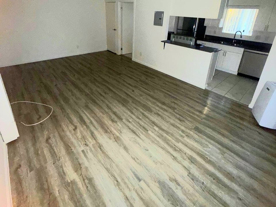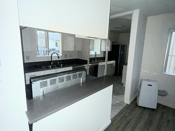 Spacious unique studio apartmentBeautiful quartz countertopsStainless steel appliancesGarbage disposalLovely kitchenDual aluminum sink basinsLaminate flooring