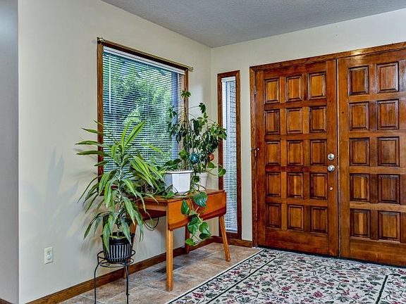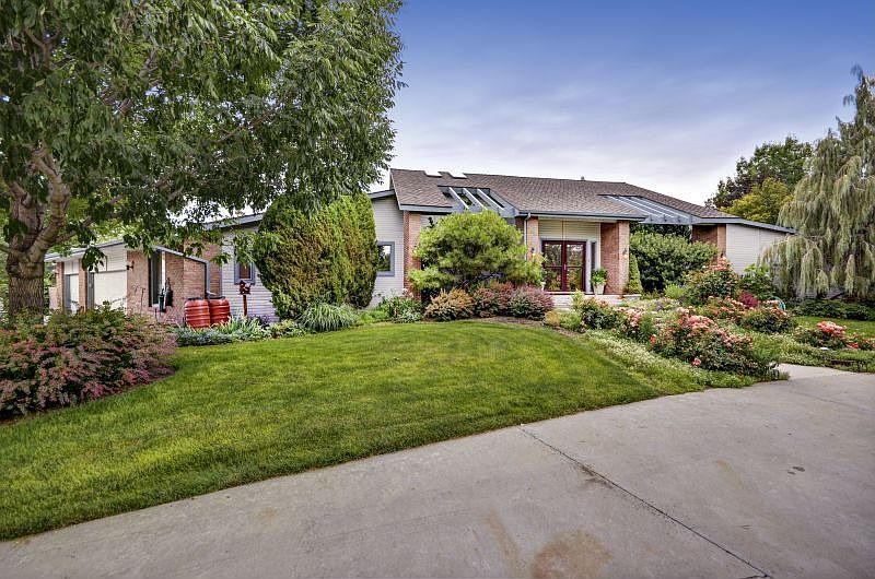 Large kitchen with butcher block island, Jenn-air gas cooktop, double ovens, and corian counters (remodeled in 2005). Great room features cathedral vaulted ceilings and gas fireplace. Master suite with his-and-her walk-in closets and window seat. Remodeled in 2010, the master bath features tiled floors, slab granite counter surfaces, Jacuzzi tub, and tiled shower.Thirty year architectural ridge roof circa 2008, 2x6 construction, wood windows, and updated floor coverings throughoutCentral vac, dual HVAC system with gas forced air furnace and central air, 2 hot water tanks (new in 2004 and 2011), 2 gas fireplaces. Private well provides domestic water and irrigation for grounds. Home connected to city sewer service.Grounds measure .91 of an acre irrigated with private well. Expansive outdoor decks recently refinished, RV parking with dump station, estate like grounds with gardens, flower beds, and a fenced bird sanctuary. Three garden sheds (greenhouse excluded) and a dog run area. Brokered And Advertised By: Group One Listing Agent: Eva Hoopes