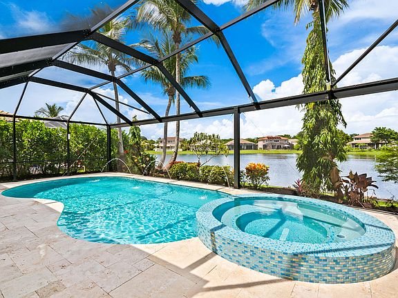 This beautifully renovated home in the desirable Waterways at Boca Winds community offers 4 spacious bedrooms, 2.5 bathrooms, and a 3-car garage on a beautiful lake view lot. Thoughtfully upgraded with wood look tile floors in the main floor living areas and engineered wood floors on the stiars and second floor. Renovated chef's kitchen equipped with Bosch & KitchenAid appliances. Enjoy Martin Logan in-wall theater speakersThe backyard is an entertainer's dream, designed for year-round Florida living. Enjoy a Pebbletec-refinished heated saltwater pool (2025) with Jandy variable drive pump and iAqualink automation, a travertine pool deck, hurricane-rated screen enclosure with LED lighting, and a covered patio with cedar ceiling & outdoor TV wall, summer kitchen and fans. Click for info Additional highlights include a newer roof (2017) with gutters, full impact windows & doors, whole-home foam insulation, new electric panel (2024) with generator hookup, landscape lighting (2024), new Electrolux washer/dryer (2023), HVAC (2022), hurricane-rated pool enclosure (2022), and hurricane-rated insulated garage doors. The garage features a Wi-Fi mini-split A/C, epoxy floors, and new Wi-Fi garage door opener (2025).