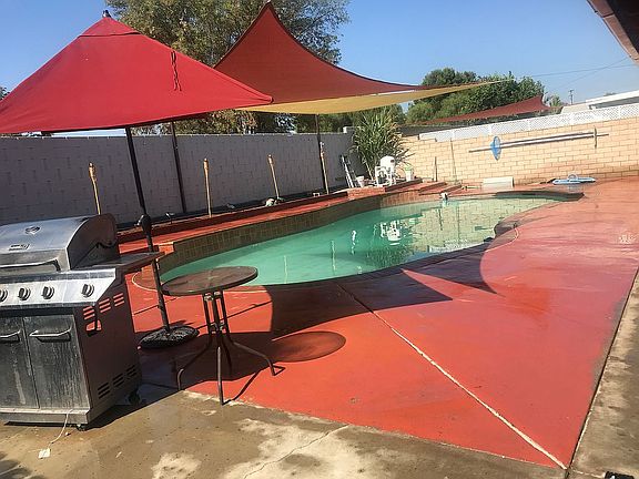 Demand location, freshly paint inside and out, custom kitchen cabinets, tile counter top, 4 large bedrooms with separate master bathroom, large living room and attached dining area, the family room/kitchen has a wood burning fireplace, custom tile floors, laundry area in the garage, direct entry from the 2 car garage to house. Plus a sparkling in ground pool and large rear yard for family enjoyment, move in condition.