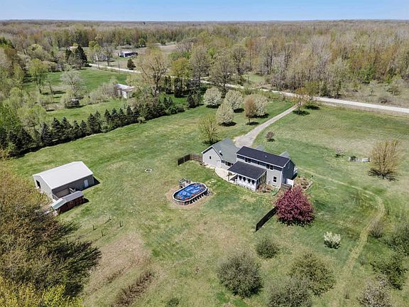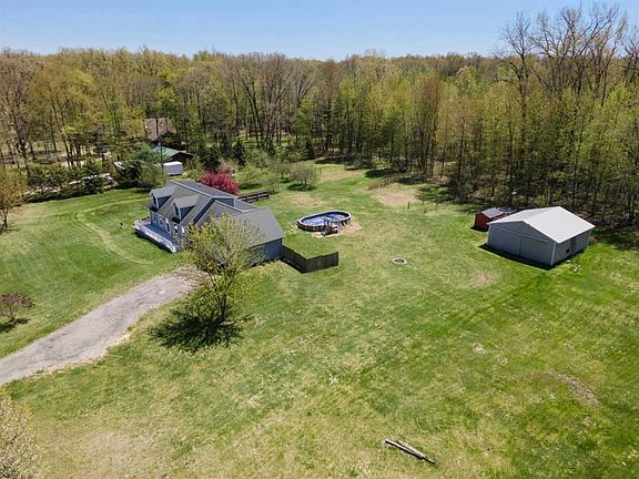 This well-kept, modern-built home on just over 10 scenic acres is perfect for anyone interested in sustainability or who just wants to be immersed in nature, while still being a quick drive to Milan and US-23 for easy commuting to Ann Arbor, etc. Enjoy the apple and pear trees, grape vines, blackberries and blueberries. The chicken coop and the huge 30x32 ft pole barn are ready for your hobby farm or self-sustaining lifestyle. Enjoy the spacious open yard, cool off in the pool, or explore the trails and clearings in the woods to escape into nature. The house provides ample space and can accommodate a first-floor lifestyle with two bedrooms and a full bath on the main floor. A second full bath and two more spacious bedrooms make up the second floor with an attached closet area that would serve as an over-sized walk-in master closet, storage or desk space, or whatever suits your needs. The basement is partially finished with a durable epoxy floor and neutral panel walls and offers additional functional space for storage or living.New furnace, AC, and water filtration system in 2018; new front porch in 2017; new durably vinyl siding in 2016.