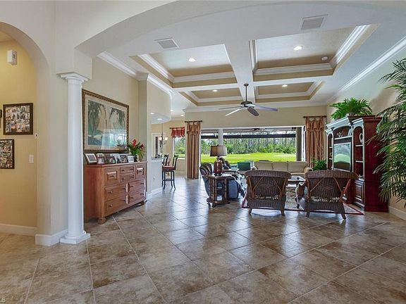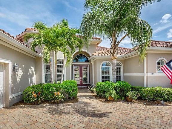 The moment you enter into this Centex built Jameson Model you will feel the luxury and warmth of this quality 4 Bedroom 3 Full Bath, Den 3,018 sq. ft. home. You are greeted with a stunning entrance with a wonderful view of the Lanai, solar/electric heated salt water pool/spa and picture window screen overlooking a spectacular view of Plantation Country Club's 17th green with lake and protected preserve. Inside this perfectly kept home you will find 20" diagonal tile floors, wood flooring in Master Bedroom and Den, High Coffered Ceilings, Plantation Shutters and Crown Moldings throughout, custom upgraded cabinets, countertops, stainless appliances, fish bowl window feature in breakfast nook overlooking the private extra large screened lanai with large custom pool/spa, summer kitchen and spacious under cover seating areas. An added bonus is an extra 5 Foot Extension to the Garage! Amenity Center, resort style pool and spa, Har-Tru tennis courts, Pickle Ball, and Sauna. Exterior of home just repainted. I-75, RSW Airport, Shopping, Boston Red Sox and Minnesota Twins training parks. If this will be your permanent home or a vacation property you will enjoy every moment in this fine home!