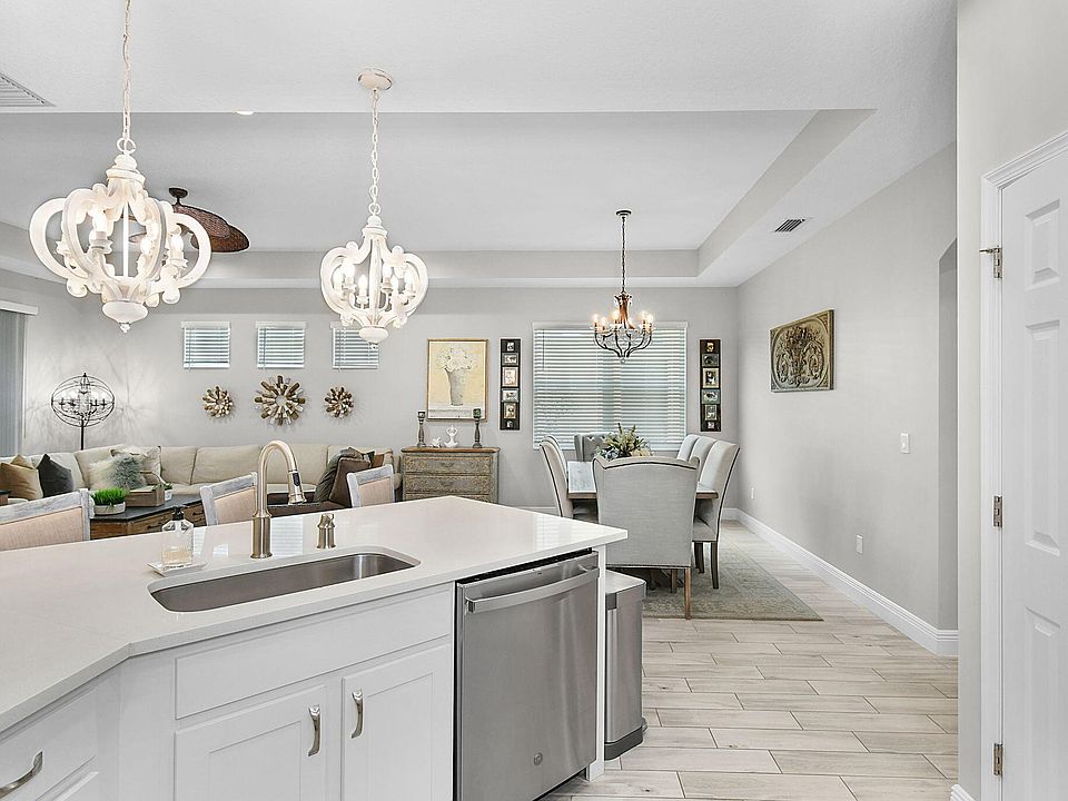 Elegantly stunning - professionally decorated! This pristine 3/2/2 PLUS DEN is a master class in how to appoint a villa to turn heads! Just move on in and enjoy! Upgraded kitchen, baths, flooring, lanai, and landscaping. Ideal for downsizing without regretting it. The den boasts an ideal space for reading, working, or just some ''me'' time. Upgraded flooring throughout - no carpeting! Impact windows and doors and you're situated at the end of the street with only one homeowner driving past you. Exquisitely upgraded landscaping welcomes you from the moment you arrive! Come enjoy the peaceful quiet of LakePark located in beautiful Tradition! Must see to fully appreciate this beautiful gem!