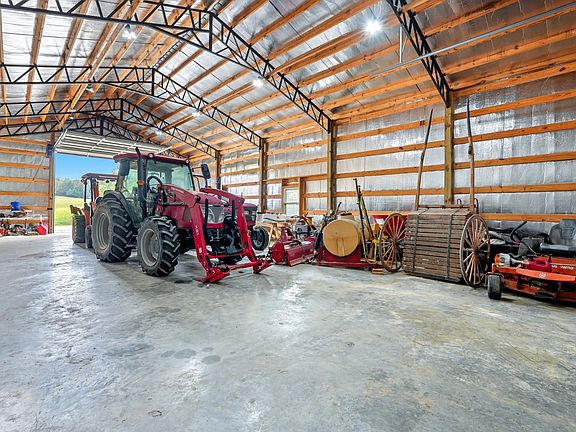 This farmhouse sits atop a hill that provides mile wide views, AMAZING SUNSETS & PRIVACY ~ 1860 sq ft DETACHED SHOP with leanto ~ 63+ ACRES ~ bring your animals to graze the lush green pastures or get ready to see wildlife galore on this hunters dream property! The home could be the perfect place to homestead or it could be enjoyed as a hunters lodge paradise. Garden spots, pastures for food plots or animals, CREEK, pond for watering livestock and wildlife ~ HOUSE features: HARDWOOD FLOORING, HARDWOOD CEILINGS, LARGE FRONT & BACK PORCHES, STAINLESS STEEL APPLIANCES, OVERSIZED KITCHEN ISLAND, SHAKER STYLE DOORS, RECESSED PANEL CABINETS, POCKET DOOR, TILE FLOORING, GRANITE COUNTERTOPS, OPEN FLOORPLAN, 4 BEDROOMS, FULL HEATED AND COOLED BASEMENT (SEMI-FINISHED), ALTERNATIVE HEAT SOURCE FOR EXTREME CONDITIONS (HEAT MASTER) 3 GARAGE SPACES ~ 20+ aces pasture/40+ acres mature timber) **PROPERTY IS BEING OFFERED AS A WHOLE AND IN SEPARATE TRACTS**