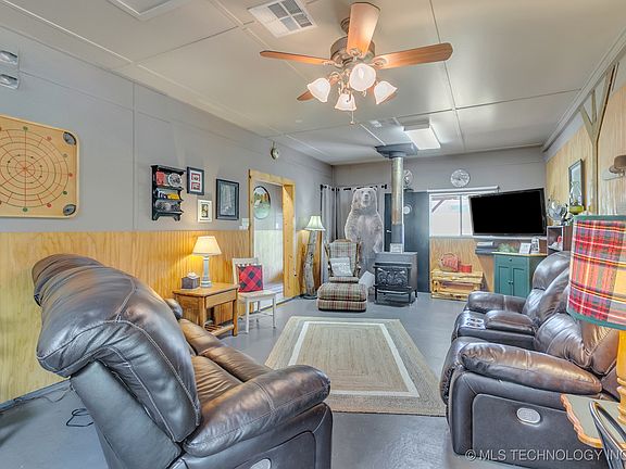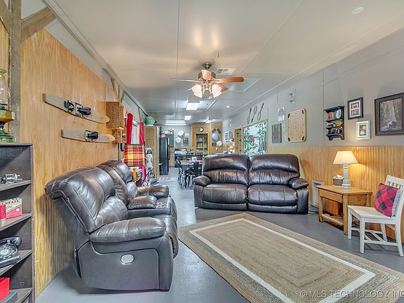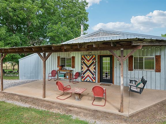 One-of-a-kind property! Absolutely charming 3 bedroom, 1 bath rustic farmhouse style cabin and approximately 14 acres. This gorgeous property includes a 30 x 40 shop building, RV storage, implement shed, RV utility hook ups, and large pond all located on a park like 14 acres more or less. Located in the heart of Tahlequah, this place is perfect for growing/harvesting a massive garden, building your own Farmers Market, developing a recreational fun spot, a small-town resort or just owning your own private retreat with all the benefits of town living. There are simply a multitude of opportunities with this absolutely beautiful home and land. The home is adorned in charming country decor with all the modern conveniences of newer appliances and central heat/ air. Enjoy the atmosphere of the country life while sitting on the large deck overlooking the beautiful pond. What an amazing opportunity. A beautiful home, shop and outbuildings on acreage with all the conveniences of living in town.