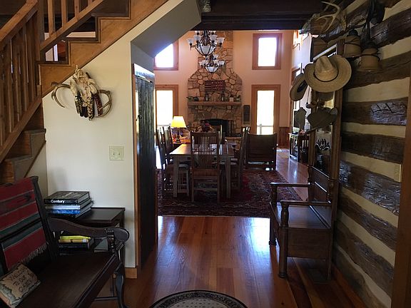 Renovated 1790s two-room dogtrot log cabin including addition of modern “Montana style” retreat home with open beam construction and massive rock fireplace. Large open-style kitchen, family and dining room area. Finished basement for movies and entertainment. Loft playroom. Workroom, storage room, garage under home attached to basement. Separate barn with storage loft and room for tractor. Stocked pond near front of property viewable from porch. Massive raised deck for parties and BBQ, views of gorgeous pasture and forest at back of property.
