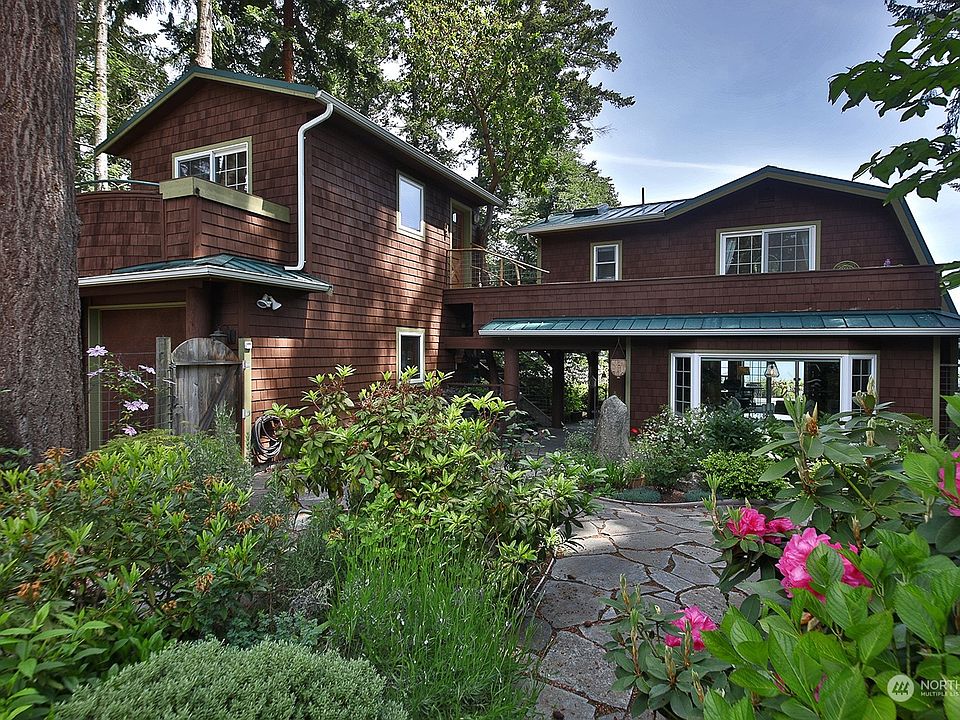 Hidden behind a decorative gate and enchanting landscape, this lovely waterfront cottage enjoys spectacular views across Holmes Harbor to Mt. Baker. The house & guest space have been thoughtfully updated creating a charming full-time home or quite island retreat. Open living areas flow onto a spacious deck with panoramic views, the ideal place to relax or entertain. Perched above the harbor, you’ll spend hours watching playful whales and passing sailboats. Sunrises and moonrises over the mountains and water are magnificent from the primary bedroom deck. The property includes saltwater tidelands, a private community beachfront lot & garden area. Experience Island living at its best, close to Greenbank Farm, shops & cafes. Check out the Video