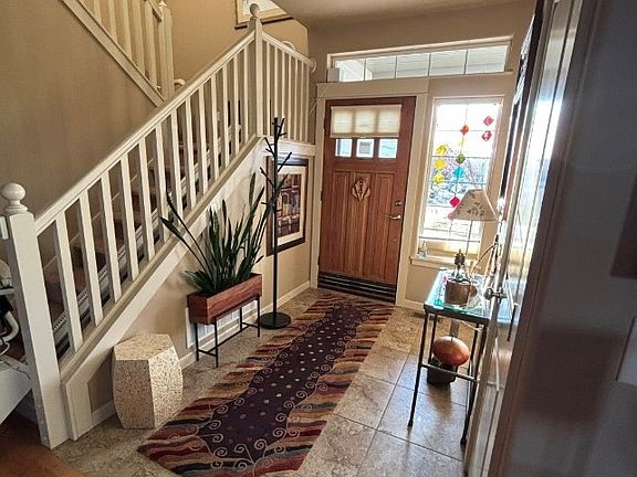 Looking for a house in Harvest Creek in a great location rougly 1 block from the neighborhoodpocket park? This is the house for you! The large lot has a fenced yard with mature trees and a private patio in the backyard. West facing with fantastic sunsets! Inside, buyers will be pleased with the open concept floor plan on the main level. Zero VOC paint , wool carpet pad. The large, recently remodeled kitchen is gas stove ready and has a spacious pantry. Upstairs is the master suite, two more bedrooms and an additional bath. Amenities include solid oak hardwood floors, an elegant gas fireplace, and a garage with built-ins!
