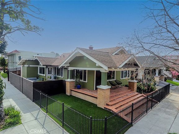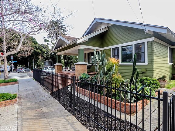 Outstanding 1918 California Bungalow, fully updated and move-in ready! This turnkey single-level residence on a corner lot in the Retro-row Alamitos Beach neighborhood is just three blocks from the Ocean and Bluff Park. It has been tastefully renovated throughout, seamlessly blending modern convenience with classic charm, character, and the originality of the Craftsman era. The property boasts three bedrooms (or two plus an office or family room) and two bathrooms, with beautifully refinished hardwood floors throughout. Additionally, it features classic built-ins, bookcases, a buffet, and a China hutch, as well as French doors and picture windows. Recent upgrades include an all-new HVAC system, hot water heater, artificial turf, new privacy fencing, fresh trim paint, fresh interior paint, new lighting and ceiling fans, blackout shades in the bedrooms, and a large-capacity washer & dryer in the laundry room. Outdoor amenities include a newly poured private patio and an above-ground spa. The seller has also added direct access to the single-car garage along with plenty of storage shelving. Further enhancements include a main bathroom renovation with a claw foot soaking tub, while the second bathroom has been updated with a new shower glass surround. The remodeled kitchen boasts all new matching appliances, refaced cabinetry plus open shelving and quartz countertops. The property is ideally situated on a corner lot within walking distance to the beach or a short bike ride to Belmont Shore, the East Village, downtown, or Shoreline Village. Don't miss out on this rare find - a true gem!