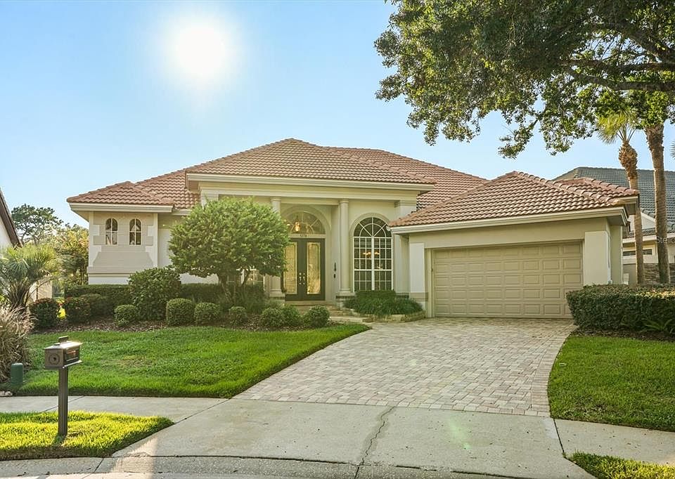 Tucked away on a quiet cul-de-sac in the desirable, guard-gated community of Heathrow, this Mediterranean-inspired Dave Brewer residence blends timeless design with resort-style living. Set on the 8th fairway, the home’s backdrop of rolling greens and tranquil water views creates a rare sense of privacy and serenity. Inside, soaring 12-foot coffered ceilings, double crown molding, and custom architectural details fill the open floor plan with character and light. Wood and tile floors lead you through elegant living spaces designed for both relaxed living and effortless entertaining. The gourmet kitchen takes center stage with a central island, abundant storage, and seamless flow into the dinette and family room—complete with built-ins and a cozy wood-burning fireplace overlooking the pool. The oversized primary suite is a true retreat with its own scenic views, a spa-like bath, and a custom walk-in closet. Three additional bedrooms provide flexibility for family or guests, while the expansive screened lanai invites year-round enjoyment with an outdoor kitchen, two-level travertine pool deck, sparkling spa, and Beadcrete pool. Life in Heathrow means more than just a home—it’s a lifestyle. From Sawyer Lake Park with its sports courts, fields, and playground, to optional memberships at Heathrow Country Club offering golf, tennis, fitness, and dining, the community provides unmatched opportunities to stay active and connected. With top-rated Seminole County schools and convenient access to I-4 and 417, this address balances luxury, leisure, and location seamlessly.