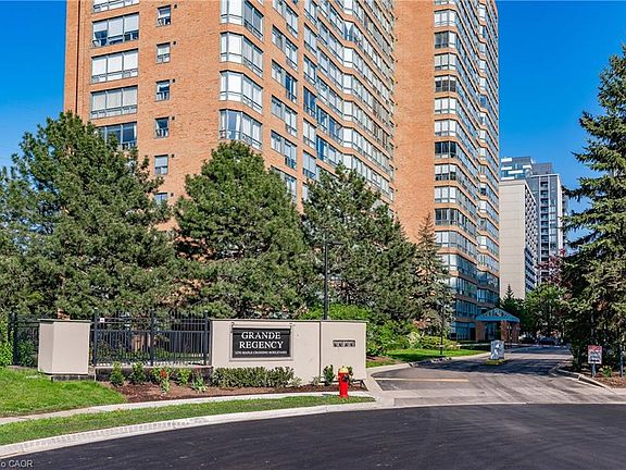 Welcome to the 'Grande Regency' - a well-managed, beautifully maintained condo in Burlington’s convenient Maple neighbourhood. This spacious 2 bdrm + den, 2 bath suite offers comfort, functionality, and exceptional value in a location that places every convenience at your doorstep. A welcoming foyer introduces the unit with an oversized storage closet & in-suite laundry for everyday ease. The large kitchen features S/S app, ample cabinetry, & a peninsula with breakfast bar seating for 3+, seamlessly connecting to the open-concept living/dining area. Durable laminate flooring & upgraded lighting fixtures elevate the space w/ modern appeal. Just off the main living area, sliding doors open into a versatile den/office - currently utilized as a 3rd bdrm - ideal for guests, work, or relaxation. The spacious primary bdrm offers dbl oversized closets & a tastefully updated 4-pc ensuite bath w/ a shower/tub combo. A well-appointed 2nd bdrm w/ an oversized storage closet and a 3-pc bath feat an oversized walk-in shower complete the interior layout. This unit includes 1 underground parking space (#365, P2) & 1 storage locker (#140, P1, Room C). The Grande Regency provides residents w/ an impressive list of amenities: front desk concierge/security, recently renovated lobby & hallways, party room, library, gym, sauna, racquetball/squash courts, guest suite, tennis court, outdoor pool, communal BBQ areas, car wash, rooftop terrace, & more. Reasonable monthly fees make this an all-inclusive building, covering heat, hydro, water, A/C, television, high-speed internet, building insurance, building maintenance, and access to all amenities. Located in Burlington’s Maple neighbourhood, residents enjoy unmatched convenience: Spencer Smith Park, the waterfront trail, Joseph Brant Hospital, Mapleview Mall, local shops, restaurants, major GO & transit routes, and easy QEW access are all moments away. A vibrant, walkable community with everything you need right at your fingertips.