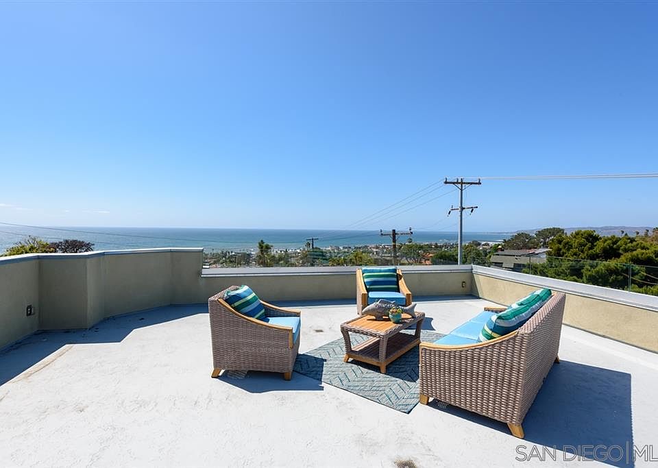 Perched at the peak of Pt Loma with 270 degree sit down views throughout the home. Look west & there are the waves crashing on the sand from the blue pacific ocean and look east & see San Diego Bay and downtown San Diego. Wide open floor plan with nothing but the finest finishes throughout. Completely remodeled from stem to stern. The kitchen and bath cabinets are Western Hemlock and were custom made in Oregon. Distressed wood floors are installed much of the home and high end carpet is in the master BR.
