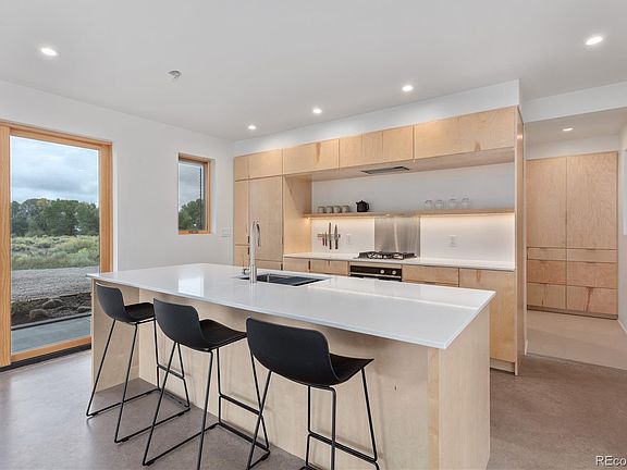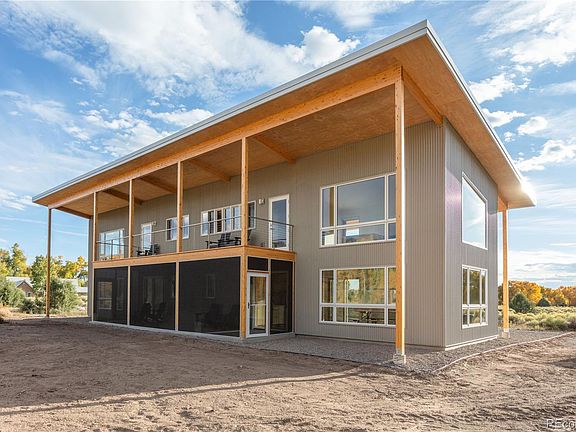 Modern Minimalist Mountain Retreat located in Crestone. Set on a quiet and private 1.64-acre lot backing to seasonal Spanish Creek, this exceptional residence offers a rare blend of luxury design, energy efficiency, and awe-inspiring mountain scenery. Designed as a dual-unit concept, this property is ideal for multi-generational living or investors seeking flexibility and income potential. Both enjoy unobstructed views of three fourteeners and a site orientation that floods the interiors with natural light. Unit 1 has 1,000 sq. ft. with a sleek kitchen design and large dining area. Upstairs, is a lofted living room, bedroom with access to both decks and full bath with an oversized soaking tub. Unit 2 has 1,350 sq. ft. with a large living room, kitchen with an island and a half bath. Upstairs includes 2 bedrooms, access to both decks and full bathroom with oversized tub. Each include a Daikin mini split for heating & cooling, radiant in-floor heat, and modern wood-burning stoves. A shared laundry room is located in a separate, lockable room between the units. Each unit has a designated hot water holding tank and separately metered electric facilitating two fully independent residences under one striking architectural form. Interior highlights include Birchwood cabinetry, high-end appliances, pull-down window shades and wood-clad Sierra Pacific windows that add to the quality of finish. Screened-in patios offer outdoor living space for all-day enjoyment. The covered decks feature Alaskan Cedar posts and decking with stainless steel railings. This home implements R-42 insulation for superior energy performance, 24-gauge fire-resistant steel roof and siding. It is wired for solar and connected to a private well and septic. Designed for durability and comfort this one-of-a-kind property combines refined modern living and resilient construction. A rare opportunity to own a turnkey property with versatility and investment appeal. Being sold furnished for added convenience.