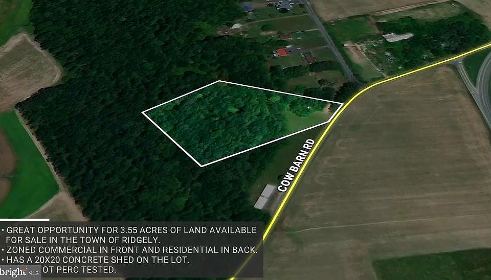 Great opportunity for 3.55 Acres of land available for sale in the Town of Ridgely. Zoned Commercial in front and residential in back. Has a 20x20 concrete shed on the lot. Lot is not perc tested. Located a few minutes from downtown, short drives to Tuckahoe and Martinak State Park (fishing, kayaking, trails, picnic area & more), 25 minutes to Bay Bridge, 30 minutes to Dover. Convenient to Route 404.