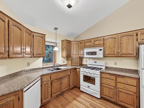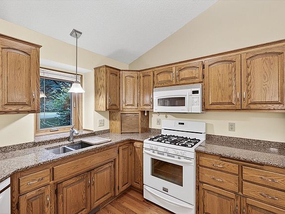 Well maintained townhome located on cul-de-sac. Home enjoys new dishwasher 2025, new furnace and A/C 2021 , new water softener 2021 , new clothes washer and dryer 2020, Cambria counter tops in kitchen, vaulted ceilings, cedar lined 4 season porch with gas fire place, 2nd gas fire place in living room also vaulted, primary full on-suite w/ soaking tub and shower, updated windows, solar sky light, large deck with scenic views and 20 tilt awning, foyer entrance and much more.