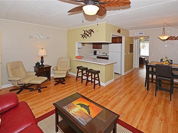 BEAUTIFUL TOP FLOOR UNIT FOR SALE IN THE POPULAR GATED NEW ATLANTIS COMMUNITY! This 1BR/1BA residence is just STEPS from the sparkling community pool, Intra-coastal waterway, and reserved parking space. This FULLY FURNISHED unit includes sleeper sofa, queen bed, and coastal décor that is full of UPDATES! Enjoy a freshly painted interior including popcorn ceiling removed and painted, attractive wood laminate and tile flooring, and an updated kitchen and bath! The kitchen remodel features white appliances, oak cabinets, and neutral counter tops. The bathroom has been updated as well, with a beautiful new vanity & sink, lighting, and a shower/tub combo. Vinyl hurricane windows installed in 2009 with tilt-in style for easy cleaning, 2012 Hot Water Heater, 2015 AC/Heat Pump and Air Handler with Wi-Fi Thermostat, 2016 interior doors replaced with new panel doors and casings, and 4" baseboards throughout. The New Atlantis Club is an all-age community with many activities and amenities. This property has two HEATED pools, Jacuzzi area, tennis court, shuffleboard court, kayak rack and launch area, workout room, computer room, community club house, pool table, outdoor grills, tiki-huts, picnic tables, car wash area, private gated access to Bonner park, bike racks, a waterfront sitting area and more. No yard work or outdoor maintenance makes it ideal for snowbirds and year-round residents alike. Do not miss this fabulous opportunity to snap up a Top floor unit, with only one neighboring unit, and two elevators in this wonderful community setting! Location is central to shopping, restaurants, and the beaches!
