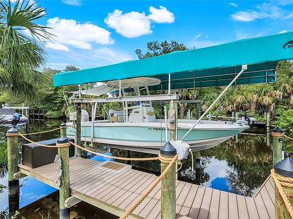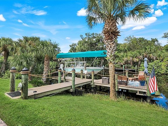 Welcome to 12761 Seaside Key Court, located in the sought-after Gulf and River access community of Moody River Estates, where luxury waterfront living meets the perfect SW FL lifestyle. This three-bedroom, plus den, two-bath home, offers the ideal combination of comfort and relaxation. The open-concept design is filled with natural light throughout, with upgrades such as: whole house generator, storm impact resistant windows, doors and screens, a gourmet kitchen with a large walk-in pantry, granite countertops, SS Appliances, custom backsplash, custom window coverings, wood cabinetry, a large serving island, ceramic tile throughout, volume ceilings, designer lights and fans, and on trend finishes that make entertaining effortless. The split-bedroom layout provides separation and privacy, while the versatile den offers endless options as a home office or guest retreat. Step outside to your private paradise and grill poolside while enjoying a colorful sunset beside a sparkling salt-water pool/spa, surrounded by lush tropical landscaping. Whether relaxing with your morning coffee, or hosting friends and family, the backyard oasis offers a true resort-style experience that must be seen to envision the possibilities. For boating enthusiasts, this property includes a private dock and a 7500-pound lift. The garage is a man/woman cave dream-come-true and features a large 6-foot extended, air-conditioned garage, with room for a workshop, and offering pull-down stairs, epoxy floors, EV and Generator plugins, and a loft garage storage system. Exclusive Moody River Estates, further enhances your lifestyle with resort-style amenities including; private security gate, boat ramp, clubhouse, fitness center, community pool and spa, tennis, pickleball, basketball courts, playground and scenic nature walking trails and more. Located just across the river from the Downtown River District in Fort Myers, this gem offers quick access to shopping, restaurants, live entertainment, museums, beaches, and more. Less than 3 hours to Miami, Fort Lauderdale, Tampa or Orlando, this is where happy memories are made. It's time to reward yourself and elevate your lifestyle... Call today!