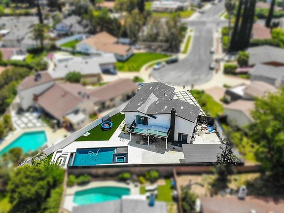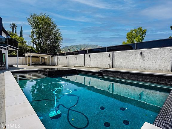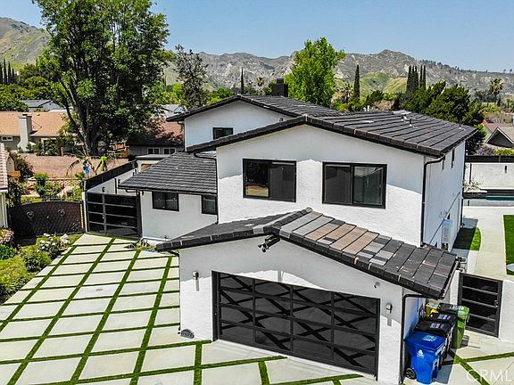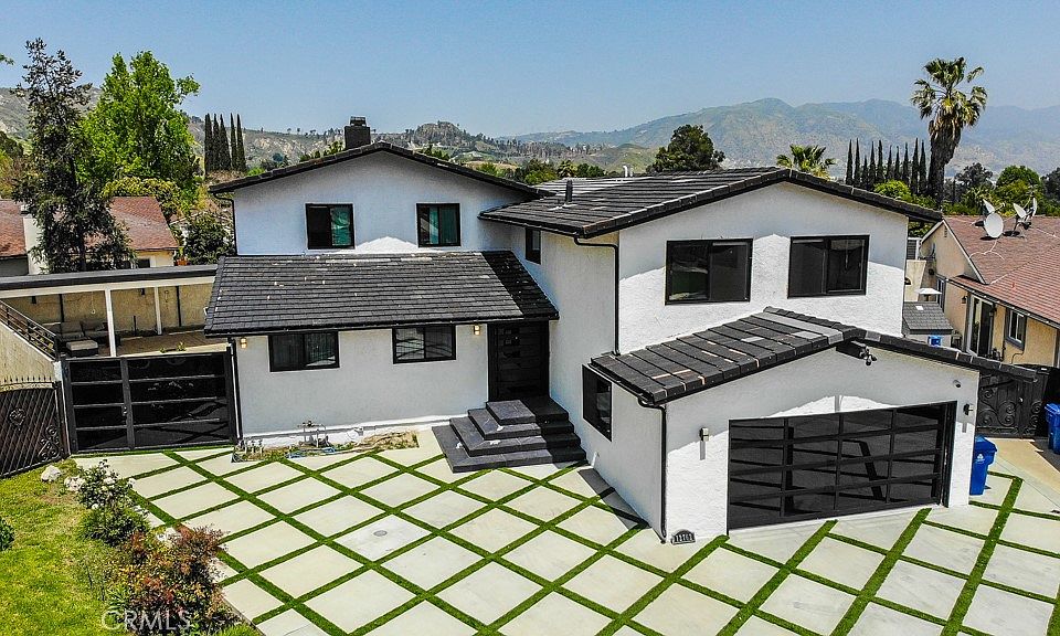 Welcome to this beautiful home located on a quiet cul-de-sac in the heart of the sought after Granada Hills! This stunning fully remodeled 2-story modern home boasts 4 bedrooms, 4 bathrooms, and 2,700 square feet of living space. As you enter, you'll be greeted by a spacious formal living room with marble floors and recessed lighting. The open concept design seamlessly connects to the formal dining room, making it the perfect space for hosting gatherings and events. The gourmet kitchen is a chef's dream with a huge center island featuring a marble waterfall and barstool seating. The black marble design on the walls and counters adds a touch of sophistication, while the Sub Zero top of the line appliances make cooking and entertaining a breeze. All bathrooms in this home have been tastefully remodeled with high-end finishes and fixtures. The bedrooms are spacious and well-appointed, with the master bedroom featuring sliding door access to a spacious balcony overlooking the backyard. Step outside to the backyard, an entertainer's paradise with a huge pool and spa with pebbled floors, a fire pit with seating, a grass area, and a covered patio. The perfect place to relax and unwind! The front yard features grass pavers and an attached garage. This home sits on a large 9,315 square foot lot in a highly desirable location, making it the perfect place to call home. Don't miss your chance to own this luxurious and modern masterpiece!