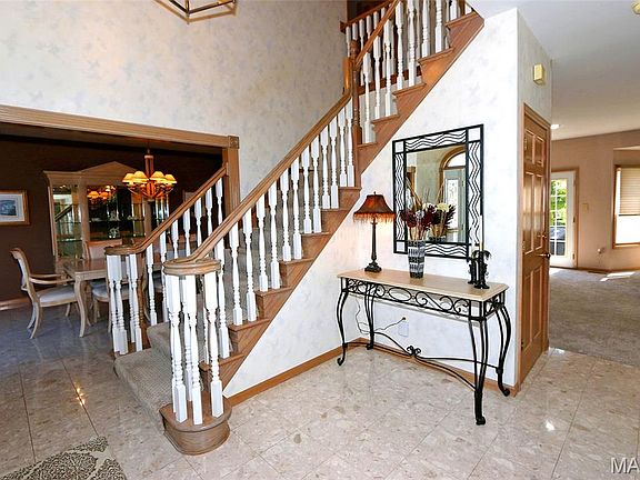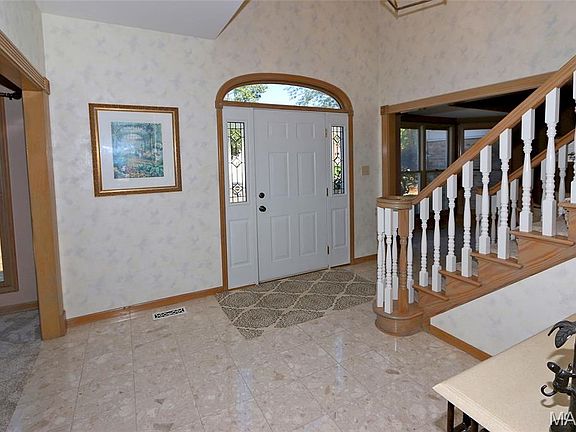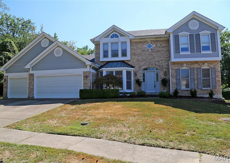 Original owner is selling this beautifully maintained, wonderfully located two-story Creve Coeur gem nestled in a cul-de-sac. You'll be impressed with the atrium foyer with dining room and formal living room on either side. Make your way into the huge den with gas fireplace, which leads into the bright, roomy kitchen with breakfast room, updated in 2017. Main floor laundry/mud room is off kitchen, providing access to three-car garage. Spacious master bedroom with separate shower and jetted tub is complimented with three additional secondary bedrooms. Full basement, almost totally finished, expands living and entertaining space with its wet bar and pool table. Closet and storage space abounds. You'll have years of virtually maintenance free living because the brand new roof with 10-year warranty was completed; Twin 40-gallon water heaters were replaced in 2024, dual HVAC systems both replaced within the last three years. Washer/dryer, pool table convey with home at no monetary value. Come see this special, spacious home and make it yours today!