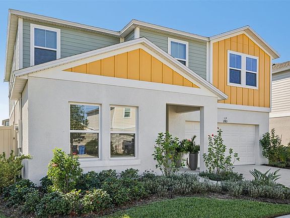 Discover modern living at its finest in this 2024-built, five-bedroom, three-bath home located in the sought-after Hawkstone community of Lithia, Florida. Offering 2,937 square feet of thoughtfully designed living space, this two-story residence blends comfort and contemporary style in one of the area’s most desirable neighborhoods. Step inside to an inviting, light-filled interior featuring modern upgrades throughout. The heart of the home is the chef-inspired kitchen, complete with a large center island, sleek cabinetry, all stainless steel appliances, and an open-concept layout perfect for hosting family and friends. The adjoining living and dining areas provide abundant natural light and a seamless flow for both everyday living and entertaining. The first floor also features a full bedroom and bathroom, ideal for guests or multi-generational living. Upstairs, a spacious flex loft provides endless possibilities—use it as a game room, media lounge, office space, or play area. The luxurious primary suite includes dual sinks, a walk-in shower, and a generous walk-in closet, creating a peaceful retreat at the end of the day. Additional conveniences include a dedicated laundry room with included washer and dryer, a welcoming covered front porch ideal for relaxing, and a two-car garage offering ample storage. Outside, the fully fenced backyard provides a private, spacious area perfect for pets, outdoor fun, or future enhancements. Situated on a 6,120-square-foot lot, this home offers the perfect blend of modern features, thoughtful layout, and community living—all in a fantastic location near top-rated schools, shopping, dining, and major commuter routes. Move-in ready and designed with today’s lifestyle in mind, this exceptional home is ready to welcome its next owner.