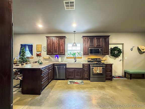 Don’t let the simple metal exterior fool you—this barndominium is full of charm and thoughtful design. Located in the highly sought-after Latta School District, this 3-bedroom, 2-bath home sits on over 4 acres with room to roam, explore, or even build your dream home. Built in 2016, it offers over 1300 sf of open-concept living space featuring a spacious kitchen with ample storage (and all kitchen appliances stay), a cozy living area, and a private primary suite with an ensuite bath and large family-style closet. The two additional bedrooms make perfect guest rooms, offices, or hobby spaces.