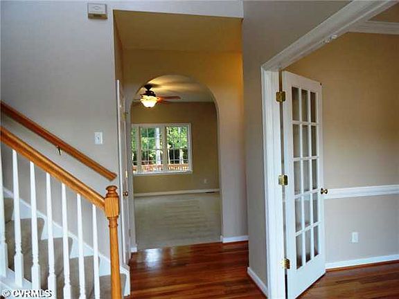 Beautiful home in the desirable Old Hundred Mill neighborhood within walking distance of Swift Creek Middle and the new Clover Hill High School. The light and airy 2 Story Foyer welcomes you into this inviting, turnkey home. All hardwood floors have been refinished, brand new carpeting, professionally painted interior & new kitchen countertops. Custom cabinetry in Dining/Living Room and Kitchen. Double doors from kitchen lead to a large 28x12 two tiered deck overlooking a wooded, private backyard. The second floor features a lovely master suite with a jetted tub and large walk in closet. Three additional bedrooms (2 with ceiling fans) and a hall bath complete the second floor. Both heat pumps less than 3 years old. 2 car side entry Garage. Maintenance free vinyl siding & windows.