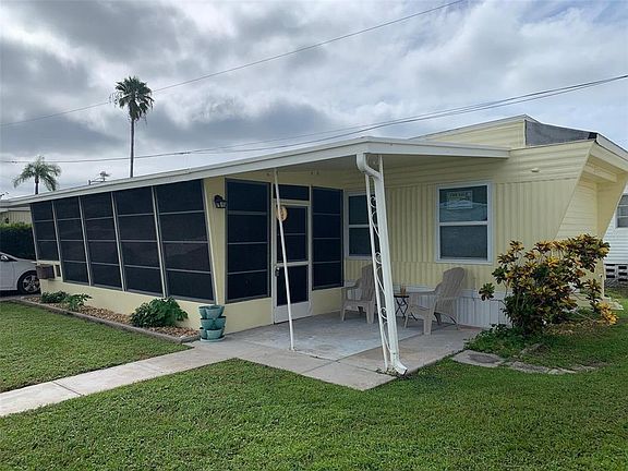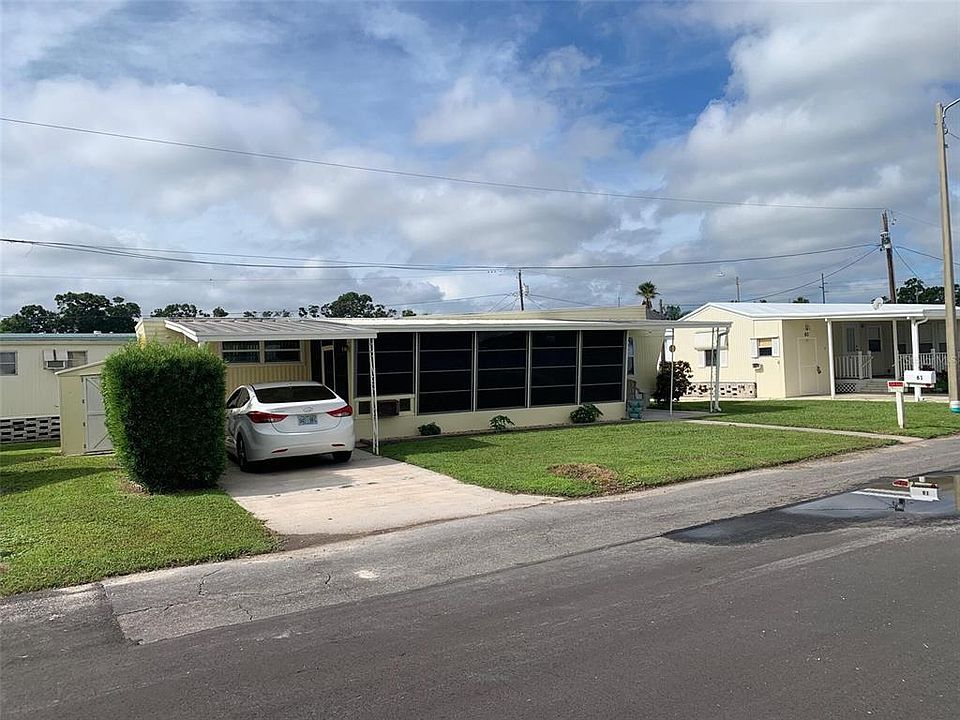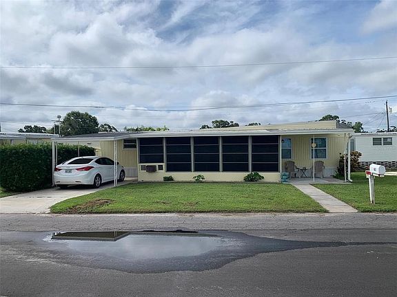 Discover this charming & updated mobile home nestled in the highly desired back area of Oasis Mobile Home Park in Largo, FL. As a resident owned CO-OP park, you will pay NO LOT RENT! Our monthly HOA fee is one of the lowest in Pinellas County, This fee covers your lawn maintenance, water, sewer, trash pickup, and common area maintenance. Oasis Park offers a shared workshop for the handy folks, shuffleboard courts, a laundry room and weekly activities where you can meet new friends and neighbors. Enjoy an open floor plan that maximizes space and functionality, appropriate for everyday living. Updated windows with drop down feature makes for easy cleaning. Updated Electrical panel. Large and bright living room adjacent to updated kitchen with new cabinets, gorgeous and durable quartz countertop, newer microwave, and double sink with built in sprayer. Pantry holds all your staples and more. Bathroom has been updated with new sink and built in storage cabinet. Large walk in shower. Large bedroom with lots of windows makes it bright and cheery. THREE, yes, THREE closets makes storing your clothes, shoes, coats, etc a breeze. Sitting lengthwise on a large lot, you have more yard space than most homes. Driveway with carport holds 2 cars. A cute side patio is a great place to read or enjoy your morning coffee. Step down screen porch with vinyl windows adds additional 240 square feet of entertaining space. Extra durable TPO membrane roof offers wind and rain protection, as well as reflecting UV rays and heat. In the adjacent shed, you will find your own washer and dryer, as well as having an additional laundry room located within the park. Oasis Park is just a short walk to the Largo Mall, featuring shops, restaurants, banks, healthcare and more. Situated on the county bus line and only 4.5 miles to the beach. A quick 15 minutes to the St Pete/Clearwater Airport and just 30 minutes to Tampa International Airport. Enjoy our warm winters or stay year-round!