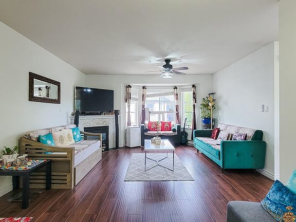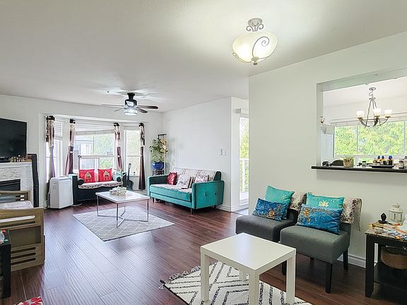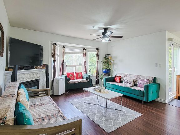 Top-floor east-facing corner unitVaulted ceilingsBay windowsCozy gas fireplaceDurable laminate flooring
