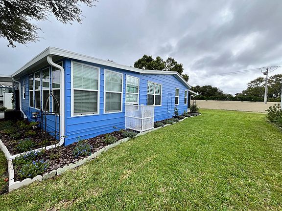 This charming 2-bedroom, 2-bathroom coastal blue home offers 936 sq. ft. of perfectly designed living space, ideal for snowbirds or anyone seeking easy, affordable Florida living. Step inside to a welcoming living room and kitchen layout, a main bedroom with walk-in closet and private walk-in shower, plus a guest bedroom and hall bath for added comfort. Recent Upgrades & Features Include: Freshly painted exterior in 2025 - stunning coastal blue New roof - 2025 Brand new AC - 2025 Epoxy-coated driveway and shed flooring Screen room on concrete slab added in 2024 New drywall in bedrooms and living area Sunroom with AC and all new windows Beautiful landscaped backyard with a gardener's touch This home is truly turnkey-just bring your clothes and settle in. With low maintenance and everything done for you, it's the perfect lock-and-go lifestyle. Located in the highly desired pet-friendly, golf cart community of La Costa Village, offering: Two pools Pickleball courts Clubhouse & fitness center Active social lifestyle Beautiful walkways and golf cart paths Coastal charm, modern updates, and resort-style amenities-this one checks all the boxes!