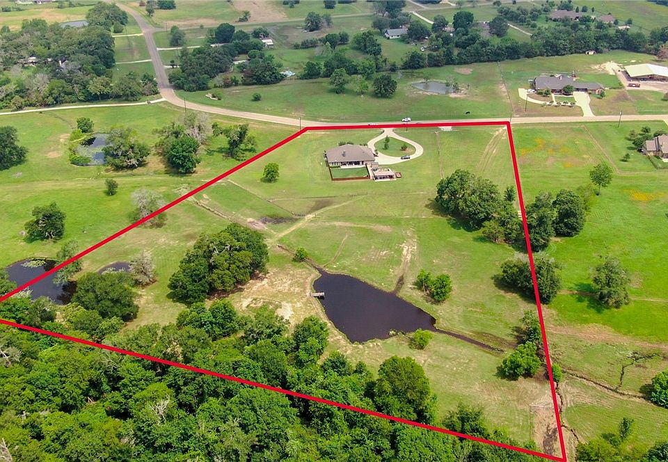Situated in the quiet enclave at Fawn Lake, this impeccably maintained residence is situated on 10.24 pristinely manicured acres. As you approached the property pass through an automatic gate and into the beautifully landscaped circle drive leading up to the homesite and three car garage. Enter the foyer and to the left you have the owner's study. Continuing into the heart of the home you find the kitchen/dining/living great room with sweeping views of the rear acreage. This kitchen has custom site-built cabinetry, stainless appliances, granite counter with chiseled edge, and central eat-in island. The dining room is large enough for 8-10 seating. The oversized living area has an Austin Stone fireplace surround with cedar mantle and beamed ceiling. The primary suite is positioned at the rear of the home with a massive en-suite bath hosting double vanities, doorless walk-in shower, and soaking tub. Three well-proportioned guest rooms and 2.5 additional baths are perfect for family or company. Attic is foam insulated with ample storage. Dedicated raised bed garden area and rainwater harvesting tank. Property has a fenced backyard, multiple cross fenced pastures, pond with dock, and a rear seasonal creek creating the perfect treed buffer to the site. Small storage building on slab plus a metal frame/covered awning for equipment. Ag tax exemption in place. Do not miss this rare listing located 10 minutes from the center of Bryan/College Station!