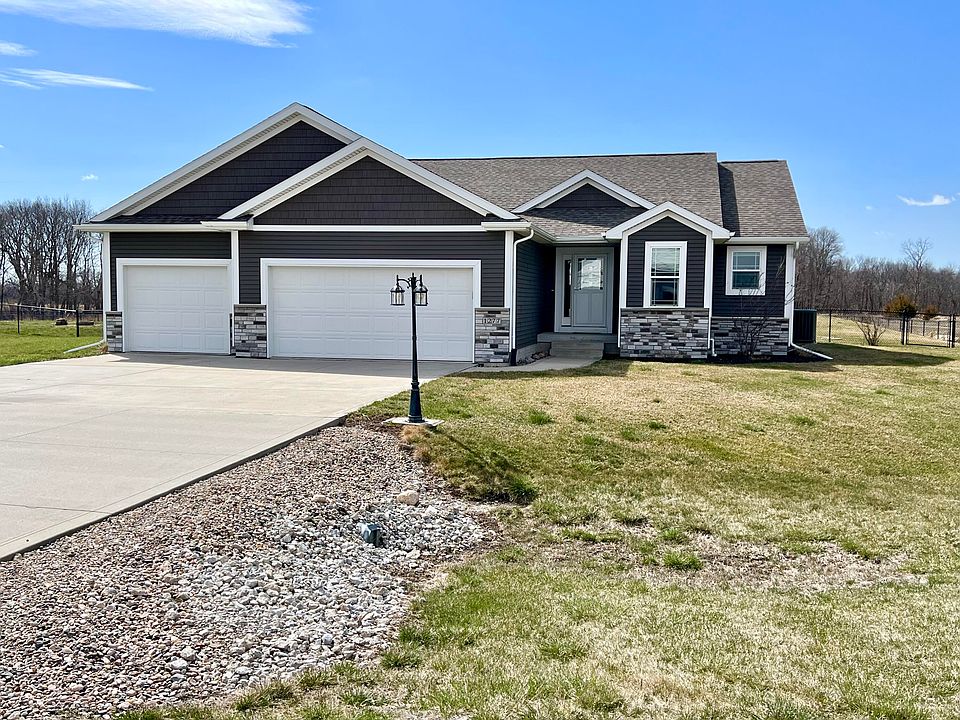 Location! Country living at its best on almost an acre of land with hard surface road, easy commute access to Ames, DesMoines and close recreation near the Ledges State Park for enjoyment. This family home features beautiful finishes and colors ready to move in and decorate, along with the open floor plan for your entertainment needs for gathering. Then take the gathering outside to enjoy the beautiful country surroundings and space! Did we mention back yard space?! The stone fireplace sets this cozy family room space waiting for the winter months. The kitchen is loaded with modern class, with stainless steel appliances and beautiful rock granite counter tops. The master bedroom is filled with so much natural light and a barn door is your grand entrance to the master bath where you will enjoy a large soaking jetted tub, glass shower, dual vanity and a large master closet for dressing. The main floor laundry and mudroom is a perfect drop zone for easy access and to keep the house clean! Two additional bedrooms on the main floor, Jack and Jill style, with a large joining bathroom and vanity counter top but has a separate toilet shower area for privacy. This homes layout is perfect for that growing family with 1682 sq ft and the basement has studded walls ready to finish with your design touch for an additional family rec room, additional bedrooms, and another bath already plumbed, plus more storage giving you 3351 sq ft total! Don't miss this wonderful home and country living at its best with amazing sunset views and all that could surround you!