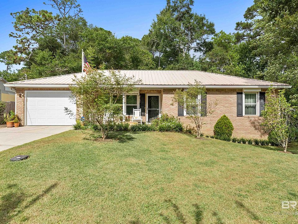 Welcome to Spanish Cove, a highly sought-after community in the beautiful Lillian, AL. With an array of amenities and activities, this community has something for everyone. Enjoy access to two clubhouses, 24-hour security, tennis courts, shuffleboard, a fishing pier, beach and picnic area, and an outdoor pool that stays open for year-round enjoyment. These are just a few of the many perks of living in Spanish Cove! Recent upgrades add comfort and style to this home, including quartz countertops in the kitchen and both bathrooms, new laminate flooring throughout, updated soaking tub and plumbing in the primary bath, and landscaping. Nestled at the end of a cul-de-sac with a second lot adding extra privacy, this 3-bedroom, 2-bathroom home offers a quiet and peaceful setting. The inviting layout features a bright sunroom with serene wooded views, a kitchen with tile backsplash, a breakfast area, and a primary suite with a walk-in closet and en suite bath complete with soaking tub and tiled surround. Two additional bedrooms share a full bathroom, while the laundry room provides extra storage with built-in cabinets. Step outside and enjoy multiple outdoor spaces designed for relaxation and creativity—a deck overlooking the trees, a patio for entertaining, and a potting shed for garden projects. A standout feature is the climate-controlled studio/workshop, offering endless possibilities as an art studio, home office, fitness room, or hobby space. A covered front porch, single-car garage, and rolling storm shutters complete this charming property. The total square footage includes the sunroom as well as the detached studio/workshop behind the home. Buyer to verify all information during due diligence.