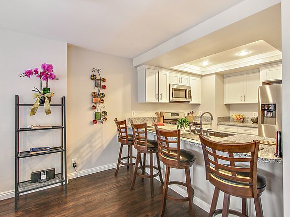 Listed as a Condo, feels like a Townhome! Wonderful 2 bedroom, 2 bath remodeled unit is one of only 6 in the building. Remodeled kitchen with room for 4 bar stools. Appliances stay including washer/dryer which is off of the upstairs bathroom. No hauling your clothes up and down stairs! Fully remodeled lower bathroom. Beautiful floors. Cozy fireplace and dining area. Some of the other added perks: Low HOA'S ! Only 1 common wall. A separate 2 car garage and storage with it's own door inside the lower main garage. If you need great parking this place is for you! Locked entry to building. Balcony off Master.