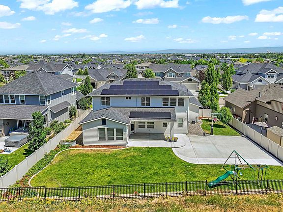Memories are made in backyards such as this! Almost 1/3 acre that is teeming w/flowers, fruit trees & garden goodies, sport court, covered patio, & no back neighbors…ever! An open concept floorplan includes an upgraded chef's kitchen w/huge dining area & spacious living room anchored by a lovely stacked stone fireplace perfect for holiday gatherings! The well-appointed kitchen includes a massive quartz island, built-in gas range, double oven, & lg pantry. A main-level bedroom & full bathroom is perfect for multi-generational living. Upstairs you’ll find an add’l 4 roomy bedrooms & a bonus room/6th bed. Relax & recharge after a long day in the serene master retreat, featuring a luxurious soaker tub, large dual vanities, & walk-in shower & closet. If that’s not enough, solar panels come FREE w/purchase! Offset those higher interest rates w/FREE ELECTRICITY! Enough juice to power an EV car while saving on those $400 summer electric bills that other homes this size rack up! Close-knit community w/pool & parks!