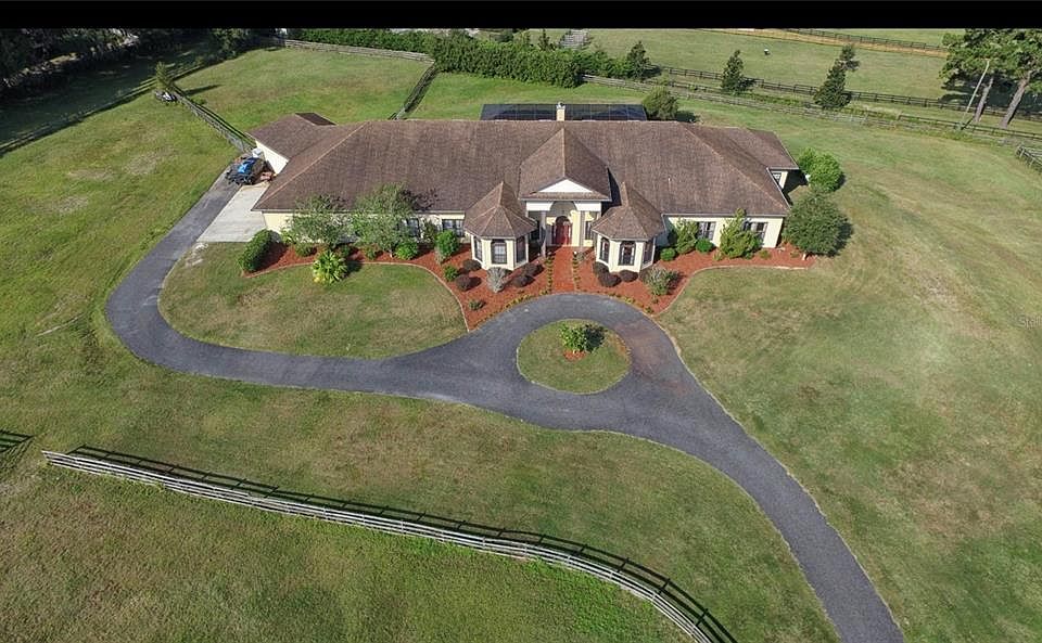 Welcome to Hilltop Estate where you can live the Premiere Equestrian Lifestyle complete with 10.23 incredible acres located in the equine community of Pinnacle Park featuring a stunning 8160 Sq. Ft. home with 6 bedrooms and 4 1/2 baths and a large spacious 4 car garage! The home and grounds have been meticulously maintained offering privacy and serenity just minutes from HITS and WEC! There are so many custom features in this home including soaring 12 foot ceilings, stunning wood beams, crown molding, granite, 5,000 sq. ft. of imported tiles, 3-5 ton AC units and all wrapped in hardboard siding. Elegantly updated a grand foyer leads to the open floor plan featuring a spacious Livingroom w/ gas fireplace and plenty of natural lighting, gourmet kitchen, stainless steel appliance and large pantry make it perfect for entertaining or daily use, private office with bay window allows you to enjoy the view, master bedroom and spacious sitting area with your own private wet bar! Updated Ensuite bath for a real spa retreat at the end of a day. Enjoy your screed solar heated pool and spa along with a rock waterfall feature. New roof, water heater landscape lighting, whole house surge protection and a whole house generator, security system, and Star Link Wi-Fi! Designed for the modern family combining luxury living with functional design. This farm has beautiful rolling hills, wood fencing, and 5 paddocks with access to the riding trails throughout the community. If you are seeking a slice of Ocala paradise this one checks all the boxes. Contact us for a showing today!