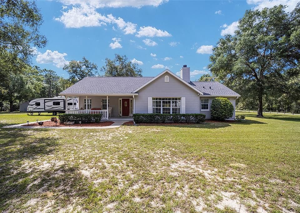 Nestled on a sprawling 2.14-acres of pristine land, this charming property offers a tranquil retreat for those seeking a serene and picturesque lifestyle. With 3 bedrooms, 2 bathrooms and 2 car garage. The heart of the home is the living room, where a stunning stone fireplace takes center stage. Its rustic charm and cozy allure make this the ideal spot to unwind. Natural light streams in through large windows, creating a bright and airy ambiance. One of the features of this property is the outbuilding. This versatile space can serve as a workshop, a studio, or even be converted into a guest cottage, offering endless possibilities for customization to suit your needs. Imagine enjoying the natural beauty of the surroundings on your front porch. The well-maintained exterior boasts a newer roof 2020 and well 2023 ensuring peace of mind for years to come. Easy drive to the World Equestrian Center!