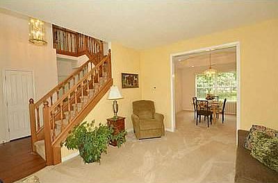 House has open floor plan perfect for today's lifestyles. Two story entry opens to a spacious living room and dining room. Cozy fireplace enhances the family room which flows into the sun-drenched breakfast room. Kitchen has lots of cabinets & all appliances included. Master bedroom has double sinks, Jacuzzi tub & walk-in closet. Convenient upstairs laundry. Large deck overlooks beautifully landscaped backyard with build in fire pit & mature trees.