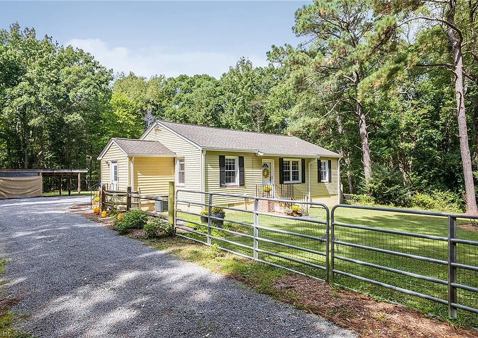 Welcome to your country oasis! This well-maintained 3-bedroom, 2-bath ranch sits on 1.5 acres and features an open concept kitchen and living room, a welcoming front foyer, and a primary bedroom with ensuite bath. The current owners have beautifully landscaped the yard, complete with a garden, and the fenced area is perfect for pets or outdoor living. A 2-bay pole barn and metal storage building provide excellent storage or workshop space. With central heat and air, private well and septic, this home offers the perfect blend of country charm and commuter convenience—just minutes from the Scotland Ferry with easy access to Williamsburg and Smithfield.
