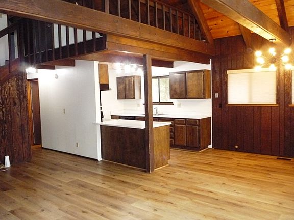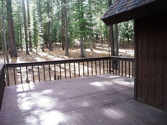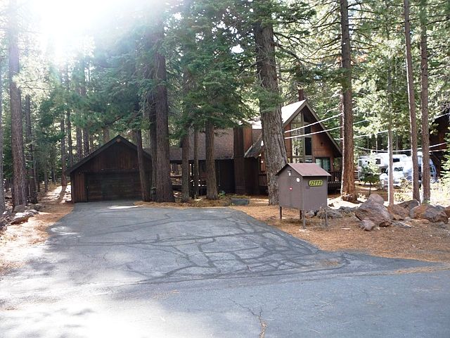 Unfurnished Tahoe Donner home in great location. 3 bedroom, 2 bath with small loft. Detached 2 car garage with level driveway, parking for four cars. Interior was just recently painted. Forced air natural gas heat and gas fired wood stove in living room. Refrigerator, range, dishwasher, and microwave in kitchen. Linoleum plank flooring with carpets in the bedroom.