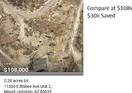 Rare opportunity for 0.39 acre lot on Mt. Lemmon with a view. Buildable lot with homes all around. Owner carry at $75k w/ $20k down for 5, 10 or 15 years. Call for Cash price. This lot may be combined with 12279 N. Miners Ridge Rd (contiguous 0.28 acre), CALL for combined price, financing or cash price. This is a Dream Home opportunity your family will be proud to own!