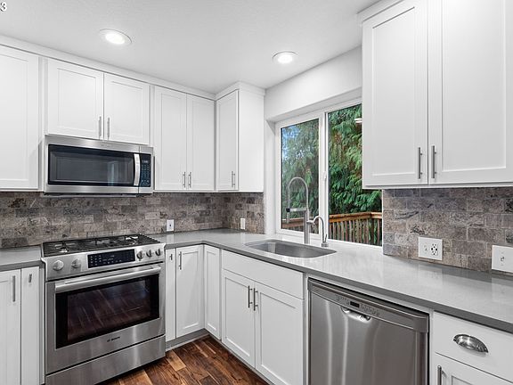 Welcome to your dream home nestled in the heart of Progress Ridge! This charming 3-bedroom, 3.5-bath home perfectly blends comfort and convenience. The living space offers a seamless floor plan that comes to life with an abundance of natural light and gorgeous acacia hardwood floors. The kitchen features stainless steel appliances, sleek cultured-stone countertops and ample cabinet space. But the allure doesn't stop there! This home includes a large finished basement that could be used as a home theater, home office, fitness area or an entertainment space. The basement conveniently opens to a separate deck, creating an ideal spot for outdoor gatherings or a quiet retreat. With a private entry off of the side of the house, this space could also be utilized as an additional living quarters.The low-maintenance yard captures the essence of Oregon beauty with a Forest Park-like setting that offers both tranquility and privacy. Picture yourself enjoying morning coffee or evening cocktails in this peaceful retreat.Situated less than a half-mile away from Progress Ridge, you'll have access to a vibrant array of amenities including restaurants, retail shopping, a grocery store for your daily needs, a movie theater and bowling for family fun. Located within the Beaverton School District boundary, this home is in the Mountainside High School, Conestoga Middle School and Scholls Heights Elementary attendance area.