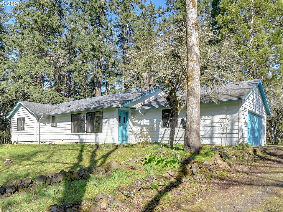 Ranch Style Home on nearly 3 Acres in Molalla~1564 Sq Ft~Two Bedrooms w/Full Bath, Kitchen and Dinning Room, offering Fireplace in oversized Living Room. Third Bedroom is Huge featuring a Kitchenette, set up like a Studio w/separate entrance (no closet, non-conforming). Small toolshed/outbuilding. John Deere lawn mower included in sale.