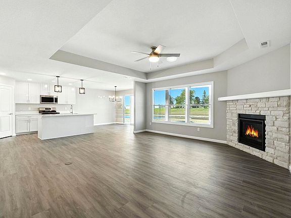 Discover this recently completed new construction home in the desirable NWAC School District. Built by Carriage Place Homes, the Welara floor plan offers 3 bedrooms, 2 full baths, and 1,633 square feet of thoughtfully designed living space. The open-concept living area is perfect for gathering with a bright white kitchen and island as the centerpiece, featuring sleek stone countertops and plenty of cabinet space. The primary bedroom en-suite features an expansive walk-in closet with custom shelving and double sink vanity. Two additional bedrooms share a hall bath and a separate laundry room finish out the interior floor plan. This home also includes a 3-car garage, providing convenience and storage.