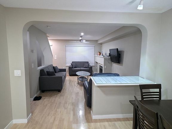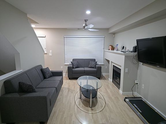 Well maintained with Excellent neighborhood three level town home with 2 Huge bedrooms and 2 full bathrooms built by Polygon. Open layout in main floor, bright living room with cozy fireplace, laminate floors, balcony off from kitchen. Single garage and covered carport with lots of Visitor parking. Very close to public transit, both levels of School and other amenities.
