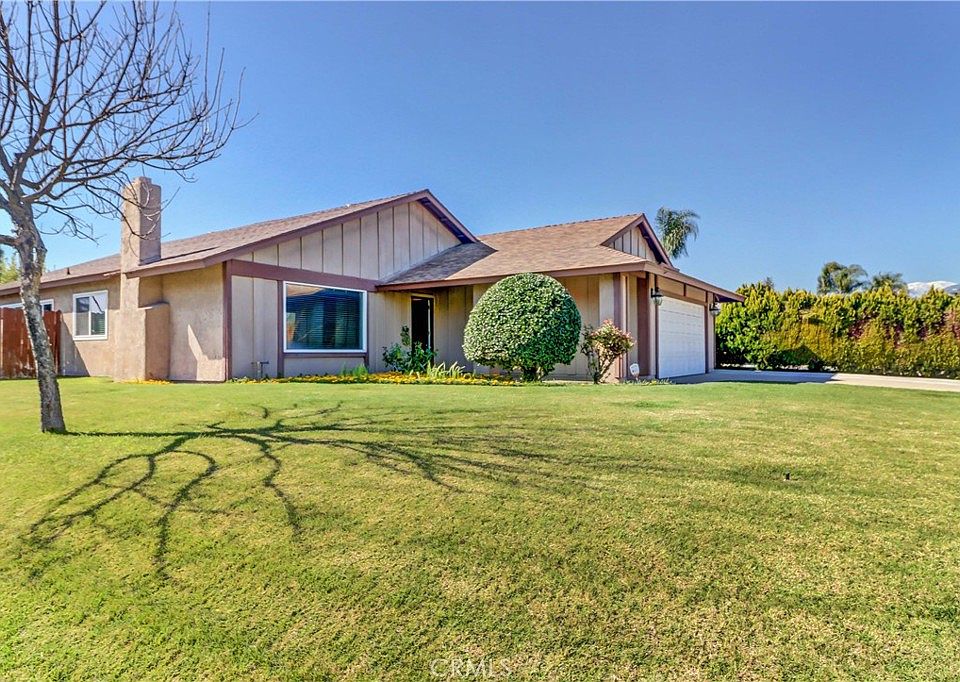 This is a beautiful 4 bed 2 bath single story home on a large corner lot in Chino. As you enter the front of the home you will notice an open living area with laminate flooring and large window overlooking the front yard and neighborhood. The updated kitchen with new stainless appliances and granite counter with an adjacent family room that leads to the spacious back yard. Perfect for entertaining and backyard BBQ's. All bedrooms are generously sized with the primary suite situated off of the family room area. Both the front and backyard are well maintained, neatly landscaped and boasts pride of ownership! This is a must see and won't last.