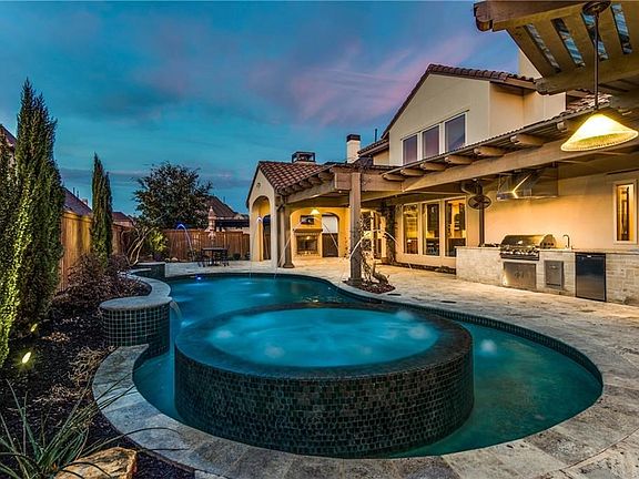 MUST SEE! Exquisite Mediterranean Darling East facing in prestigious Newman Village. Amazing backyard paradise offers pool-spa, covered patio with fireplace and full outdoor kitchen! This sought after open plan offers media, second bed, study and master down. Highly upgraded with tile roof, hardwoods throughout, surround sound, custom cabinets and granite and SS package with 6 burner gas cook top. Master features luxurious bath and huge custom closet. Ready for immediate occupancy!