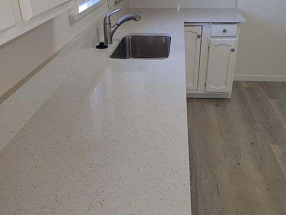 The interior features beautiful quartz countertops, refreshed flooring, updated paint, and large bedrooms with plenty of space and natural light. The home feels open, bright, and move-in ready.