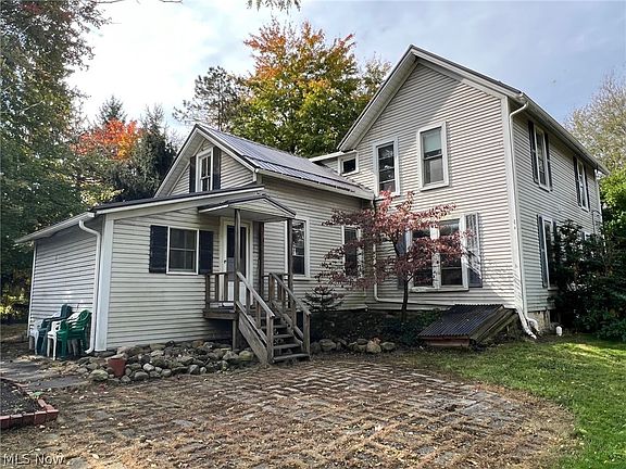 Charming 4 Bedroom & 2 Bath Century Farmhouse set on 3.75 Wooded Acres! Original character throughout this home include high ceilings, oversized trim, woodwork & hardwood floors. Large enclosed front porch welcomes you into the Living Room open to remodeled Eat-in Kitchen with abundance of cabinets, granite counters, center island, stainless steel appliances and dining area. Spacious 1st floor Master Bedroom with french doors and full bath access. 3 additional bedrooms upstairs with full bath to share. 1st floor Office & 1st floor Laundry Room. Many major updates include: New Metal Roof and gutters 2019, new Septic System installed 2021, new Well 2017, high efficiency gas Furnace and updated electrical panel. Backyard patio overlooks deep private wooded backyard. 3+car detached garage. Just minutes to Chardon Square, YMCA, UH Geauga Hospital and freeway access. Chardon School District.